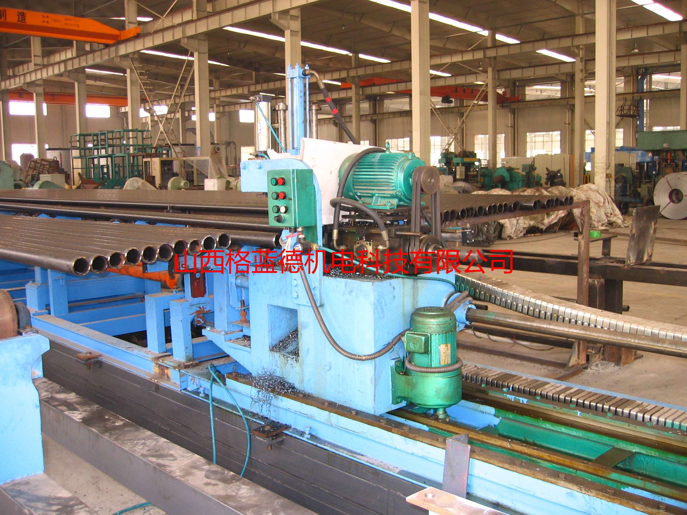 该设备布置在直缝钢管生产线精整部分,用于对直缝焊接钢管进行平头倒棱。