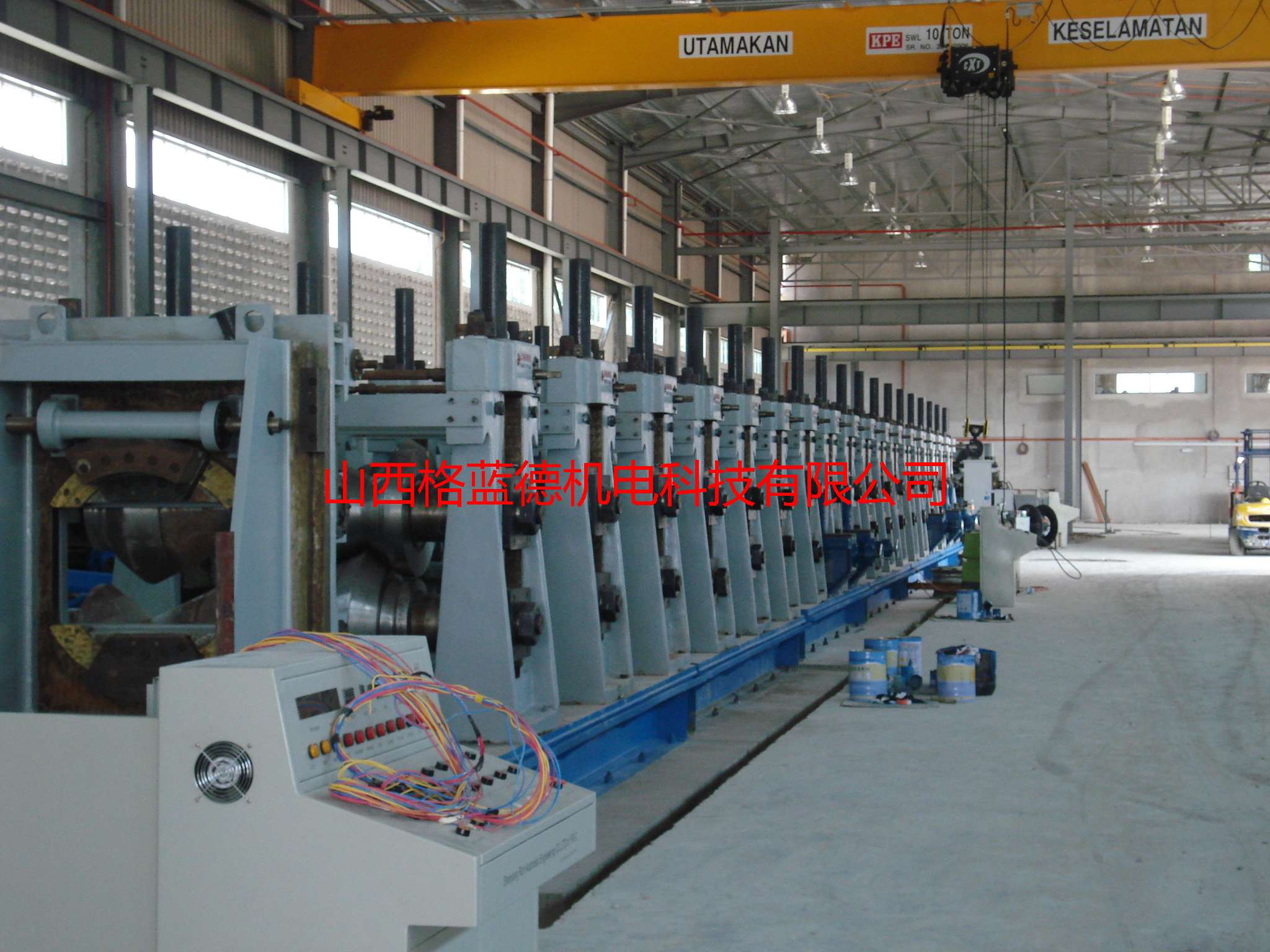 冷弯型钢机组配备的矫平机是五辊矫平机,是连续焊管机组上不可或缺的工序,它能够使带钢头尾剪切对焊顺利进行,并使带钢顺利通过活套装置,有利于成型过程。